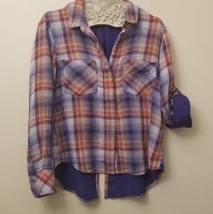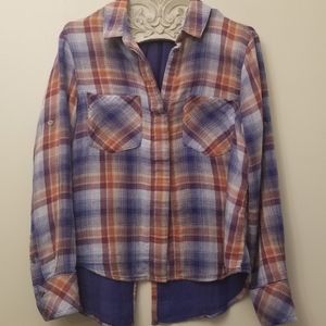 Anthropologie Cloth & Stone Plaid Split Back Long Sleeve Button Down Top Medium