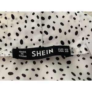 SHEIN Sleeveless Tie Front Dotted Blouse-White with Black Dots-XS