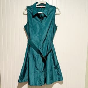 Staud Jolene Belted Taffeta Shirt Dress Coastal Green Size 10