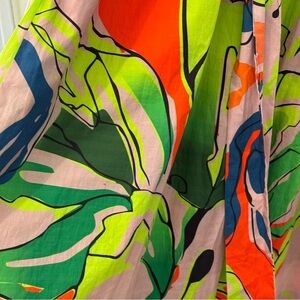 Adorned with florals and fronds in the season's most striking hues, this midi dress is subtly strewn with sequinned touches at the bodice for an added bit of dazzle.