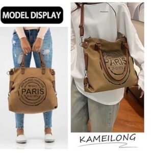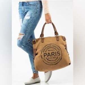 Stylish brown tote bag featuring a chic Paris design. Perfect for everyday use. New in Packaging but without tags