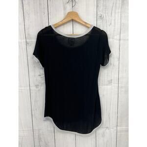 Bobeau XS Black Burnout White Fringe Tee Shirt T-Shirt Short Sleeve