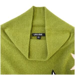Unwine 100% Cashmere Star Sweater | Soft Cowl Neck Boutique Statement Green | M
