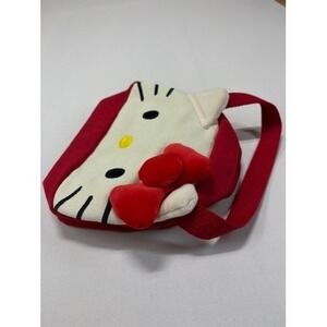 Hello Kitty red and white canvas tote bag, new without tags. Features plush red bow and embroidered details — great for collectors or everyday use.
