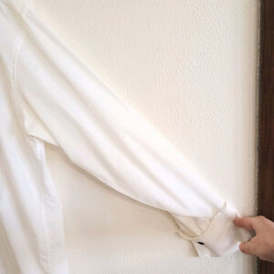 The shirt has two small light spots. It also has a very light yellowing by the neck.