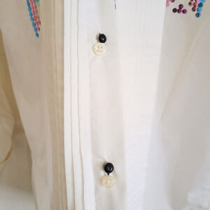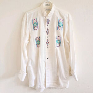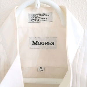 Vintage Moores Sequin Pleated Front White Dress Shirt Banded Collar Sz 15 32/33