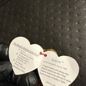 Collectibility: As a retired Beanie Baby, Scorch is considered a collectible item, especially versions with specific tag errors (e.g., extra space in the poem, or specific tag generations) which can be valuable to enthusiasts.