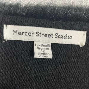Keywords: Mercer Street Studio, Black sweater, Faux fur collar, Plus size sweater, Woman's sweater, Acrylic sweater, Long sleeve sweater, Size 1X, Fall sweater, Winter sweater, Comfortable sweater, Stylish sweater, Collared sweater, Ribbed sweater, Boho, Retro, Glam