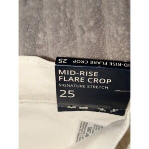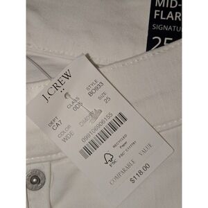 Keywords: J.Crew, white jeans, flare jeans, crop jeans, mid-rise jeans, denim, raw hem, signature stretch, size 25, casual, stylish, womens jeans, designer jeans