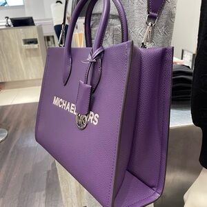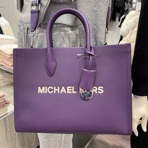 MICHAEL KORS Mirella Medium EW Pebbled Leather Tote Bag Dark Purple NWT