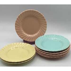 Franciscan Coronado USA Bread Plates 6.25" Set of Eight Pink Yellow Aqua Vintage