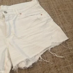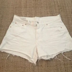 Gap White Low Rise Stride Denim Shorts Cutoff Distressing size 10 / 30