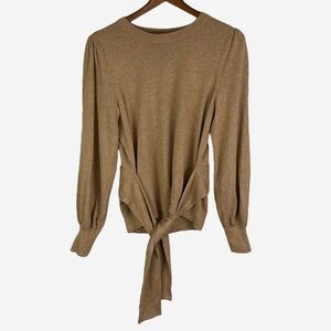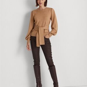 Lauren Ralph Lauren Black Label Belted Cotton-Blend Sweater Size M Camel Heather