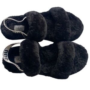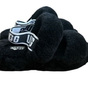 UGG Black Fluffy Oh Yeah Slides with Logo Strap