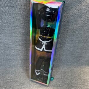 Keywords: Rainbow High, Shadow High, Doll clothes, Doll outfit, Miniature fashion, Doll accessories, Black mini skirt, Crop top, Doll boots, Collectible doll, Doll clothing, Fashion doll, Goth, Moto, High heel boots, Punk