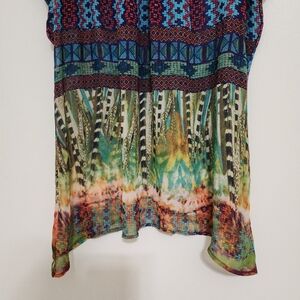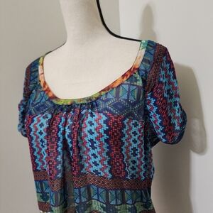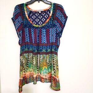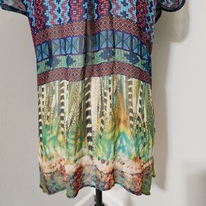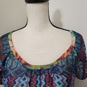 VALERIE STEVENS Sheer Geometric Multicolor Short Sleeve Lace Blouse XL