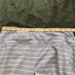 Athleta capris, lilac leggings, striped capris, yoga pants, cropped leggings, Athleta size L, activewear, stretchy workout capris, casual gym wear, lounge leggings, athleisure