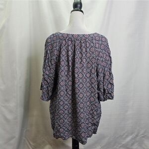Dana Buchman Blue and Red Geometric Square Neck Blouse Size XL