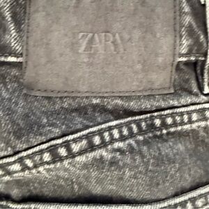 Zara Women’s High-Rise Button Fly Cropped Raw-Edge Wide-leg Black Wash Sz 0 EUC