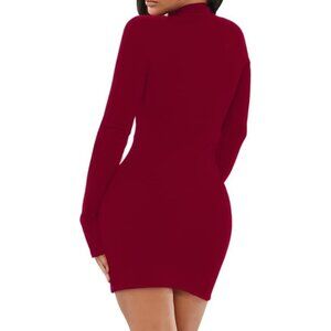 Women's Burgundy Mock Neck Cocktail Pencil Bodycon Long Sleeve Night Dresses