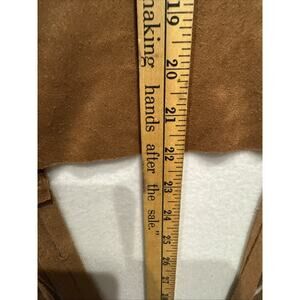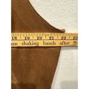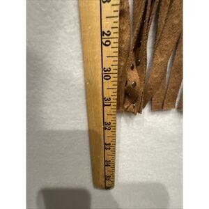 Stylish brown suede vest with fringe detailing. Perfect for adding a boho touch to any outfit.