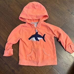 Carter’s Neon Orange shark Zip Up Hooded sweatshirt. Size 24 months. Excellent preloved condition. Unisex can be for boy or