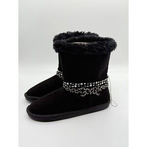 Justice Girls “Ugg” Tassels Fur Lined Boots Y2K Old Stock Black 7 NWT