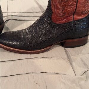 Lucchese Black and Brown Crocodile Western Boots