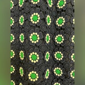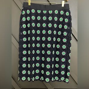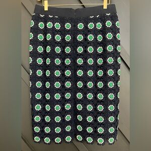J. Crew Pencil Skirt in Navy with Green and White Floral Crochet, Size 10