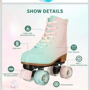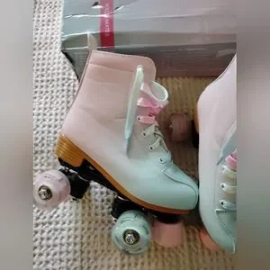 These stylish kids roller skates feature a delightful pastel design, perfect for fun and active play. The skates offer a comfortable fit and smooth ride, making them ideal for young skaters.