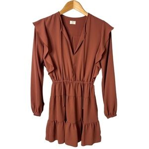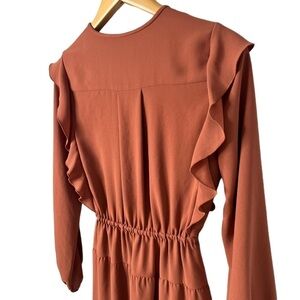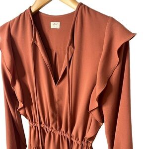Wilfred Long Sleeve Ruffle Mini Dress Rust Brown Size XS Fall Boho Cinched Waist