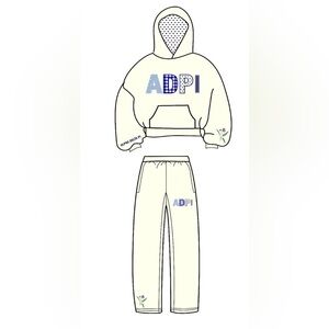 Chic and comfortable wide leg pants in a classic white shade, featuring a delicate embroidered violet and ADPI design. Perfect for any occasion.