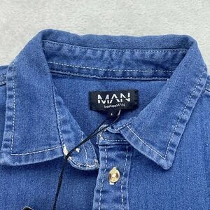 BoohooMAN Denim Shirt Short Sleeve Button Up Casual Top New L