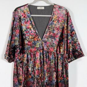 Natural Life Stella Velvet Babydoll Mini Dress Womens Sz L Floral V-Neck Boho