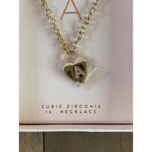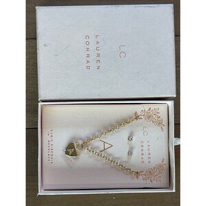 Lauren Conrad Cubic Zirconia Heart Necklace & Earrings A Initial Gold Tone 16"