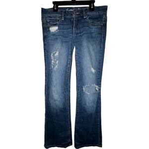 American Eagle Distressed Boyfriend Jeans Sz 2 Blue Denim Mid Rise Stretch