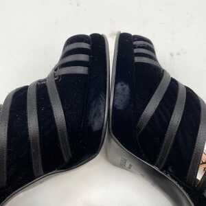 - Flaws: Two small spots of light wear on velvet on inner sides of heels, as pictured.
