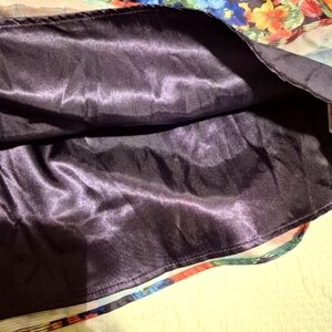 Monsoon girls size 11-12 years purply flowy fully lined sleeveless dress, hidden back zipper, waist ties for bow, fabric flaw on right front, middle and left side, all pictured, floral design all around dress