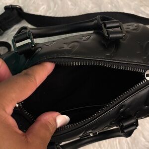 Stylish black handbag with embossed design. Features a sleek and modern look. Only used once. Dust bag included.