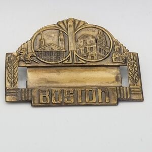 Boston Ma Antique Art Deco Metal Name Tag C Clasp Pin 20s State House 1.5"X1.75"