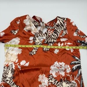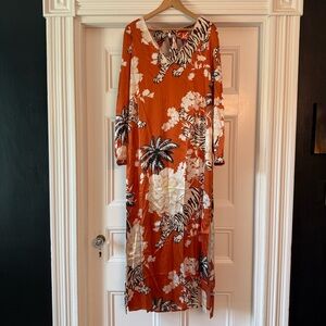 NWT Las Sureñas Women’s Long Orange Floral Tiger Print Dress Medium 100% Silk