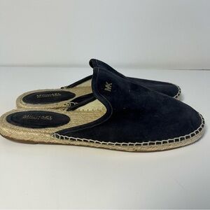 Michael Kors Hastings Espadrilles Slides Blue Suede Mules Flats MK Shoes Size 8