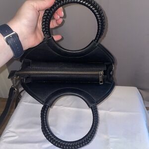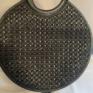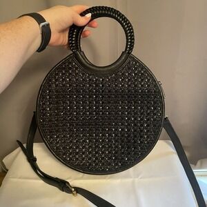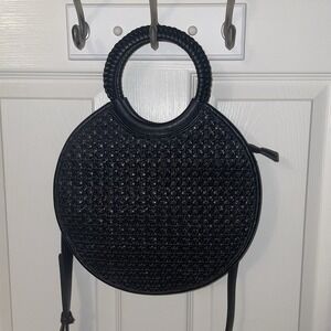 Anthropologie Black Woven Circle Top Handle Bag Handbag Purse Crossbody Strap