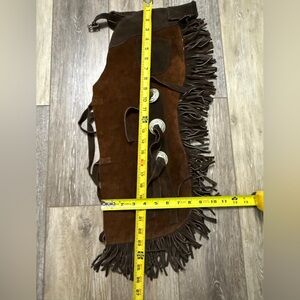 *Equi-Grip Horse split suede leather fringe show brown chaps Size Medium.
