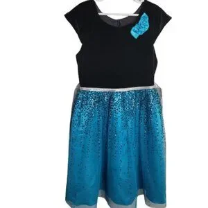 Jona Michelle Holiday Formal Dress Velvet Bodice Button Back Teal Blue 10