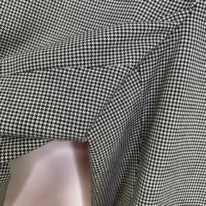 Black cream micro houndstooth cropped capri pants. Hook and bar closure, belt loops, cropped length.