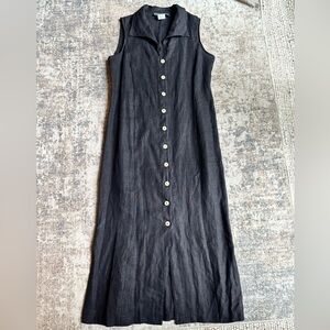 Vintage Harvé Benard 100% Linen Black Button-Front Midi Dress Size 12