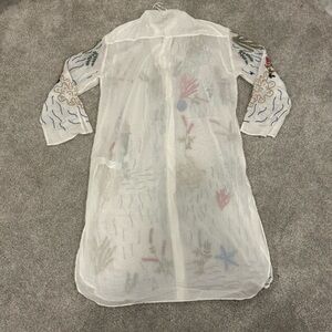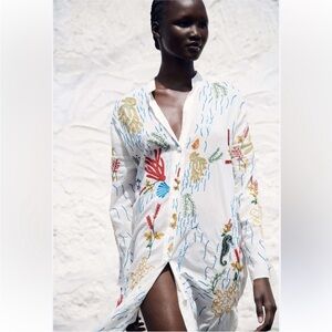 Zara Long Embroidered Blouse Oyster White Jellyfish Seahorse Bloggers Favorite