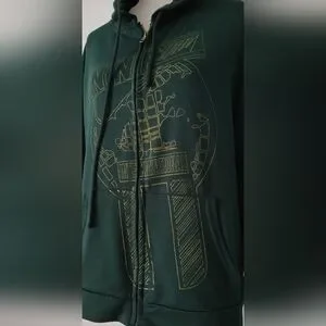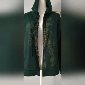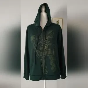 Unbranded Jacket Unixex Green With Hoodie Zipper Front Medium Pockets Good Co