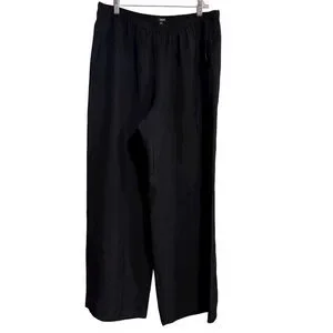 This style is a silky textured satin pull-on pant with an elastic waistband and relaxed leg — typically described as a blend between dress pants and comfortable everyday trousers.